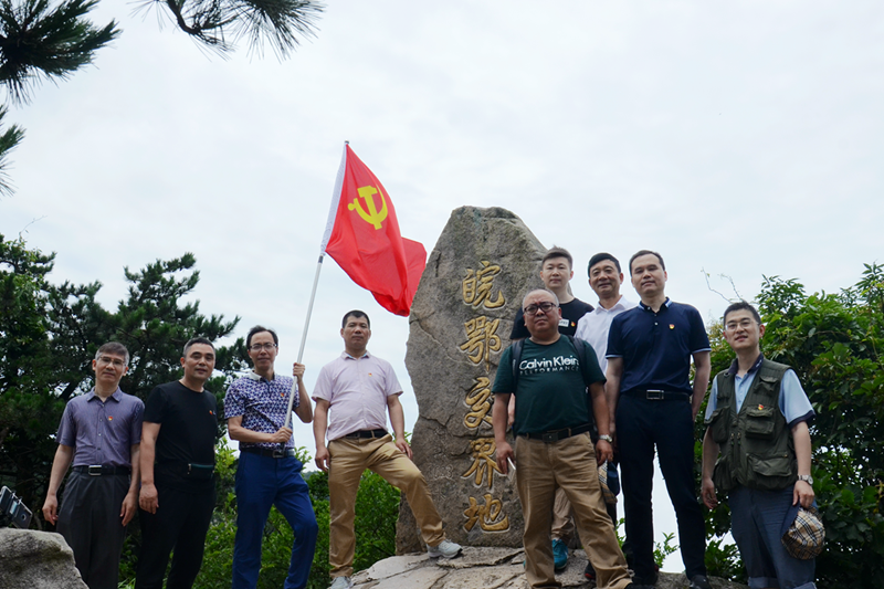 2019年7月13日上午8點,海陸重工黨員先鋒隊成員共計十六人,沿著72年前革命先烈的道路,從大別山北麓險道龍脊背攀登,與當(dāng)日中午12點左右全員登頂,歷時四個小時。